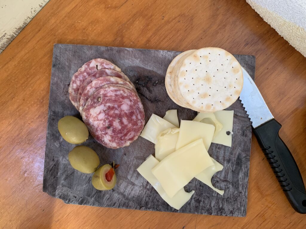 bored, maybe a repeat or yet to decide.. clearing a place as an ode to the dairy section, some meats an olive or three & cracker there then what’s matched… cheese