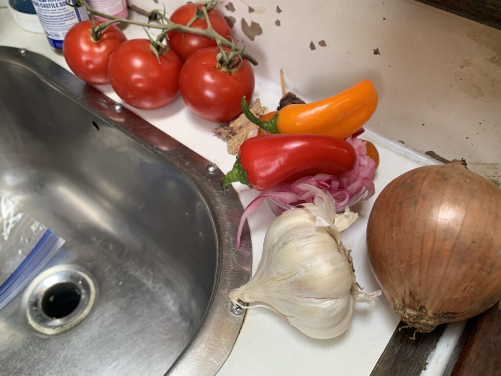 still life with one from the galley before we depart.. winter giving springs forward to a new rebirth. onion, baggie with backing of liquid body soap an the side